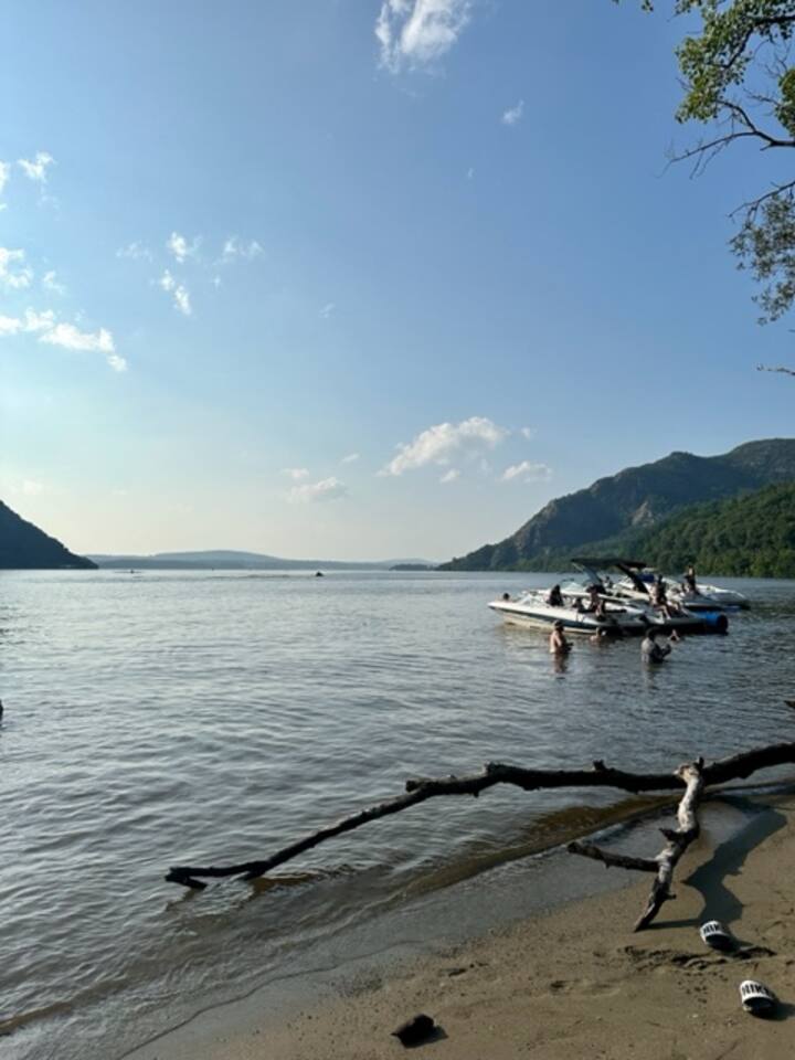 Your Home Base for all that Hudson Valley Offers! Beacon/West Point/Storm King/ - off street parking for one car - deck - coffee bar - luxury mattresses - solo stove - first floor unit Attractions: *3 min to Waterfront Dining & shopping and eats on Liberty St. *10 min to Beacon and Dia:Beacon *20 mins to mountain hiking trails *15 - 30mins to farms & wineries *15 min to Stewart Airport *25 mins to West Point There are two security cameras: -outside by the deck - outside on the side