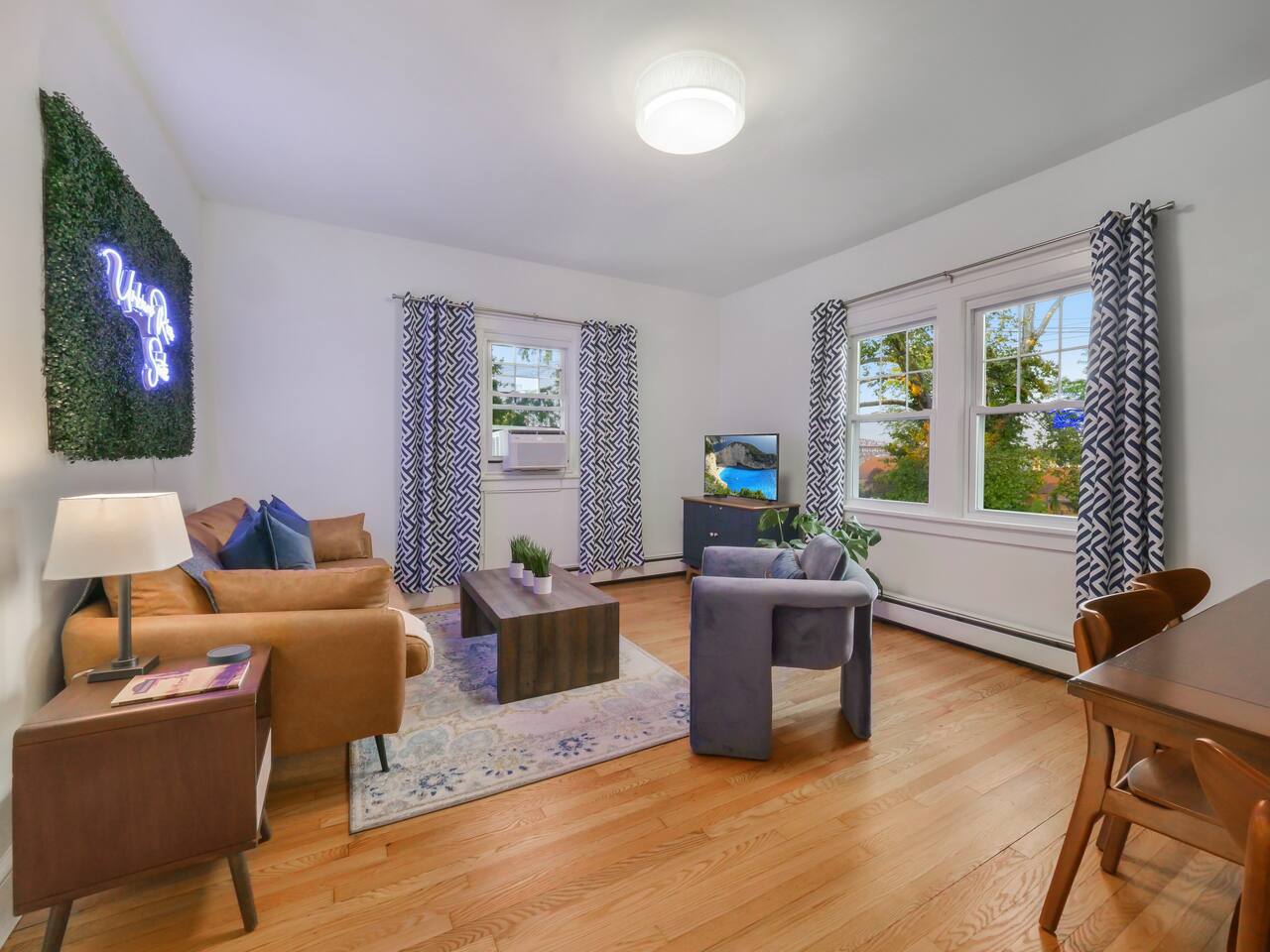 *Please note: This property is the first floor unit of two units in the home. If you are interested in renting both units during your stay or if you would like to book a single-night stay, please contact the host directly via the platform. We would be happy to accommodate you! Water Street (one block behind the property) is the primary road that takes you to Newburgh’s waterfront for premier dining. At certain times traffic noise may be heard. It’s not intrusive, but may be noticeable depending upon the time of day. If you are an extra light sleeper, complimentary earplugs are available in the bathroom and a white noise machine is available in the closet. There is no access to a washer or dryer. The Hudson Valley is a National Heritage Area steeped in history, natural beauty, culture, and an incredible food and farmer's market scene. Enjoy the views from the suite and I encourage you to check out the local restaurants & coffee shops, wineries & breweries, art galleries, shopping, and outdoor activities during your stay! There are two security cameras: -outside at the backdoor by the deck - outside on the side of the home