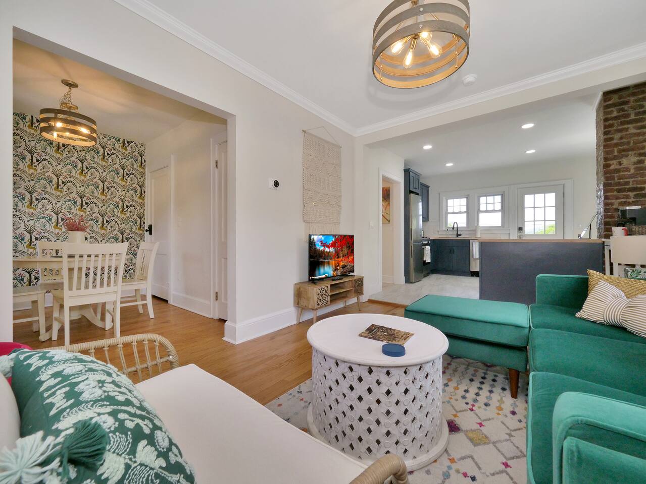 Wake up to sunrise views over the Hudson River and Mt. Beacon in this bright, boho-inspired apartment. Located on the top floor of a historic two-family home, this cozy space blends natural light, curated design, and thoughtful amenitiesâperfect for a weekend getaway, creative escape, or base for exploring the Hudson Valley. ⸝ đď¸ The Space: ⢠2 queen bedrooms with Helix mattresses ⢠Living room with smart TV + board games ⢠Separate dining room ⢠Fully equipped kitchen with cooking basics ⢠Coffee bar with K-Cups, ground coffee, tea, creamers ⢠A/C + ceiling fans, white noise machine, earplugs ⢠Private deck with views ⢠Shared backyard with Solo Stove fire pit ⢠1 off-street parking space + free street parking ⸝ đşď¸ Nearby Attractions: ⢠3 mins to Newburgh Waterfront & Liberty Street ⢠10 mins to Beacon & Dia:Beacon ⢠15â30 mins to hiking trails, Storm King, West Point, wineries & Stewart Airport Security Cameras: ⢠Exterior security cameras at the back deck and side of home
